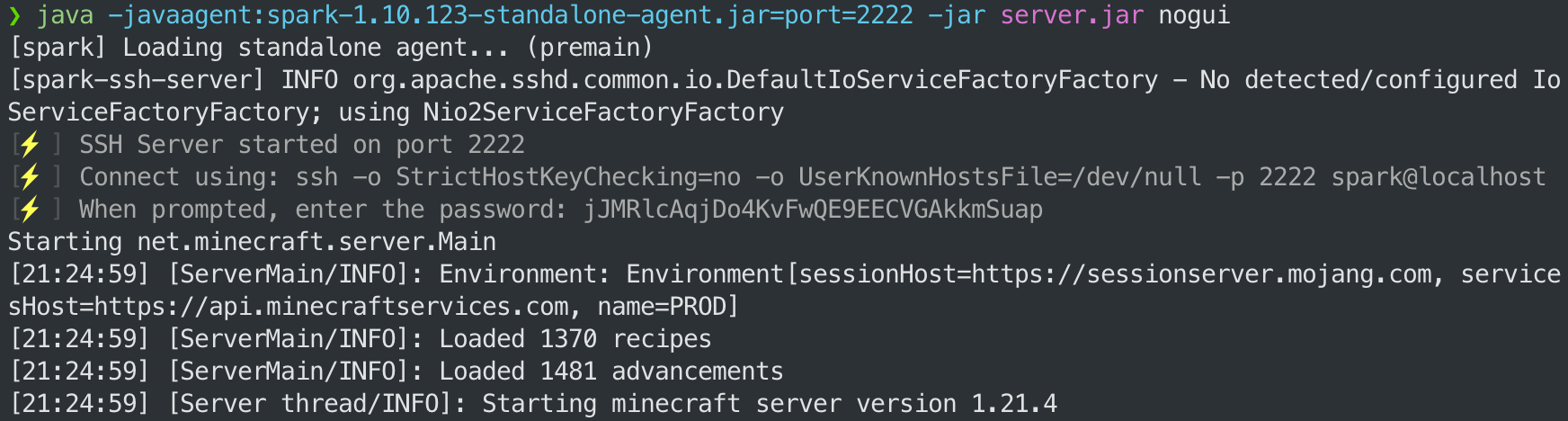Once the agent is attached, you can interact with it using a special SSH interface. When the agent starts, it will print connection instructions to the application console/log output.