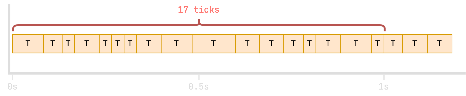 As you can see, all ticks in this example took less than 50 milliseconds, but they were spaced out to ensure that exactly 20 were processed in a second.